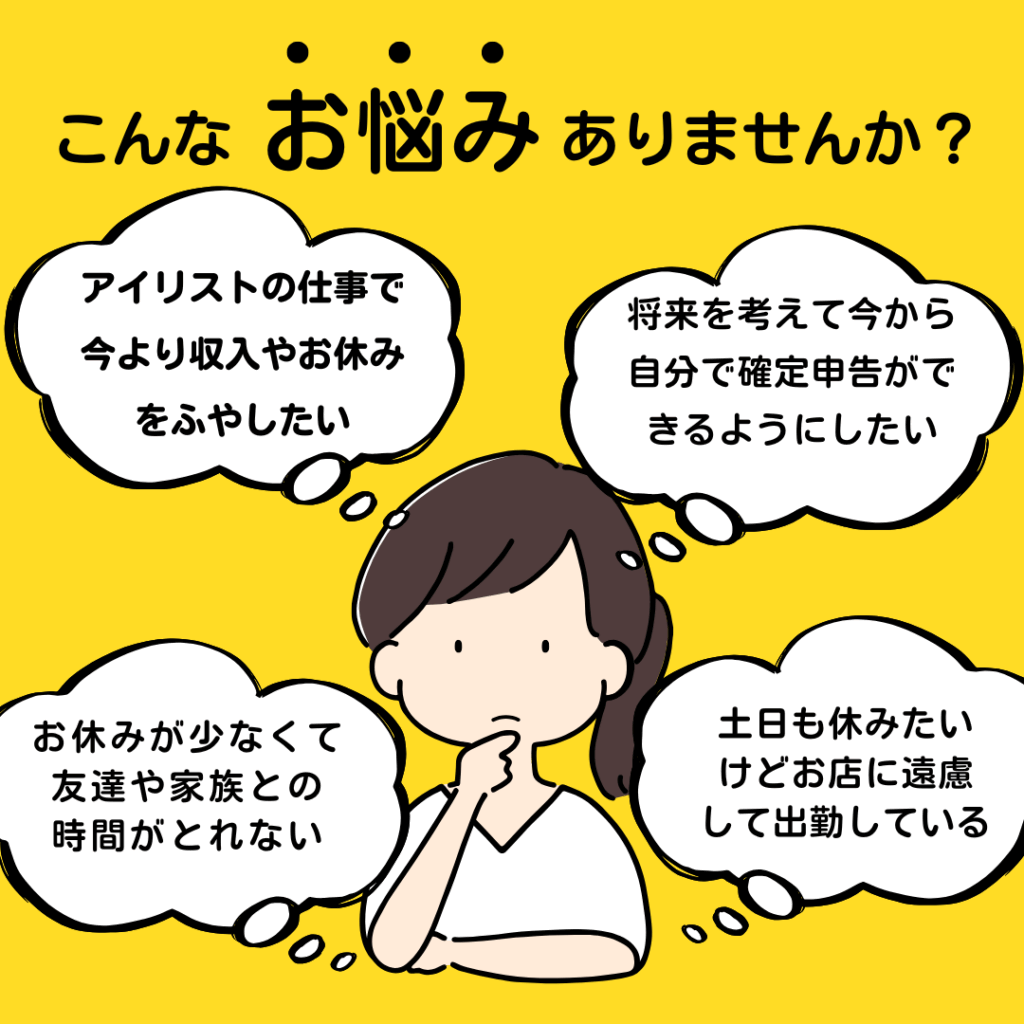 また、ご希望があれば格安で税理士サポートをうけることができます。税理士サポートをうけるとすべての税金手続を税理士に外注することができますのでアイリストの仕事に専念できます。